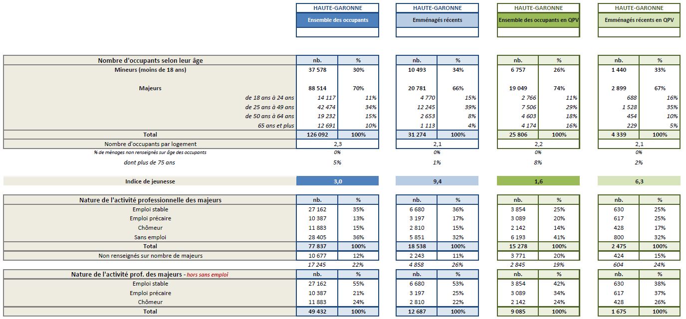 Les indicateurs de l’Occupation du Parc Social pour la Haute-Garonne sont les suivants :